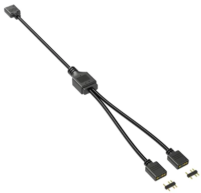 - Splits from 1 motherboard/controller connection to 2x ARGB devices.