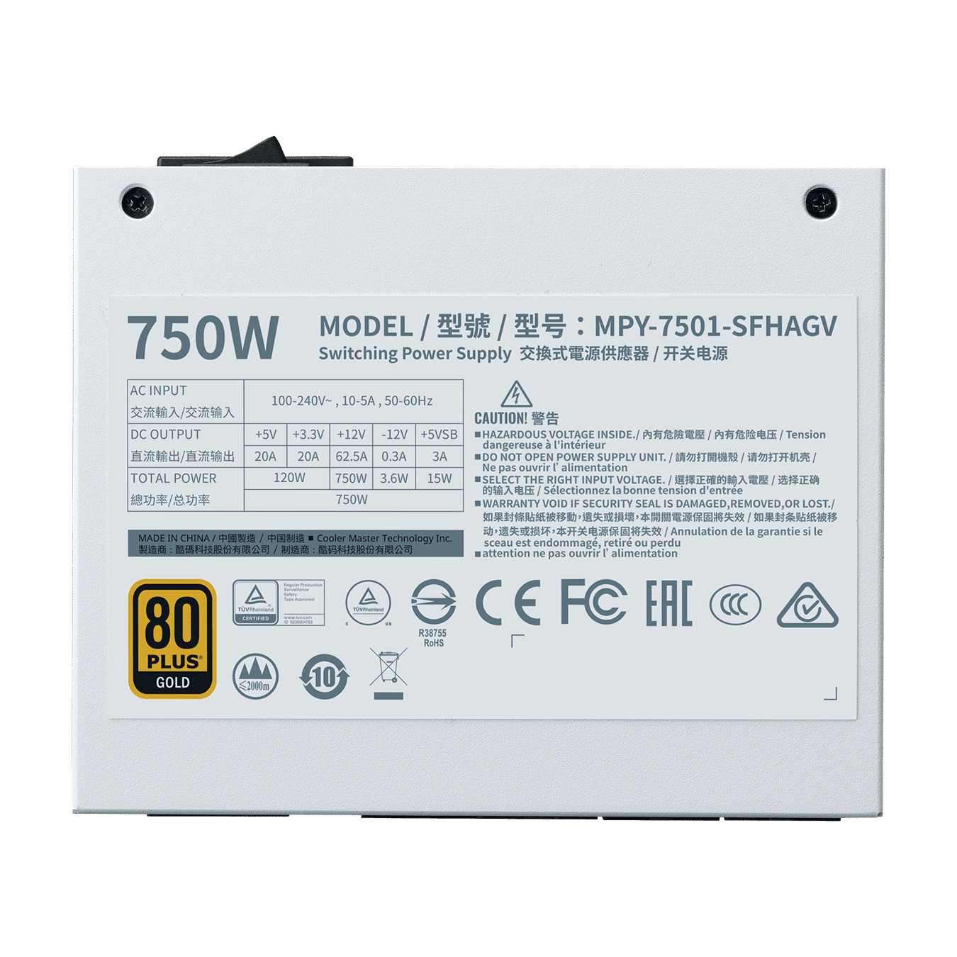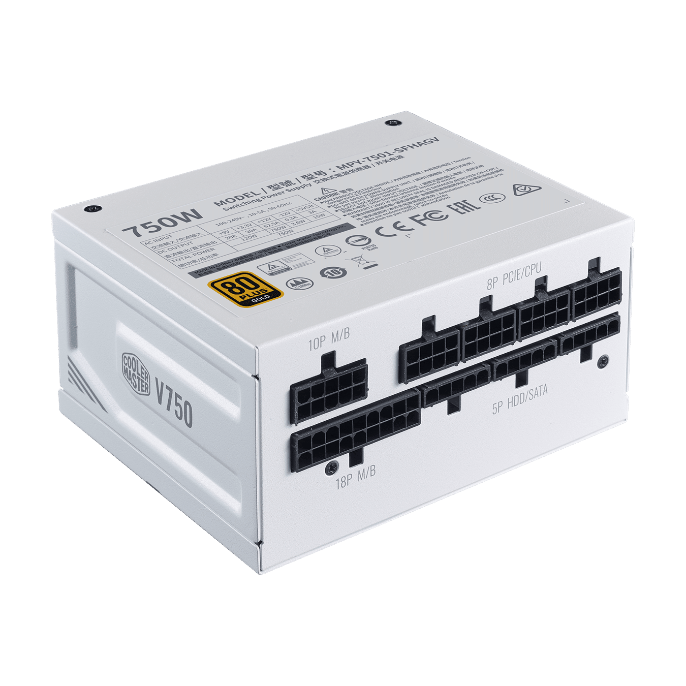 Cooler Master V750 750W 80Plus Gold Rated Power Supply, Fully Modular (White)