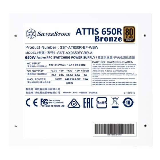 Silverstone ATTIS 650W White ATX Power Supply (80 Plus Bronze)
