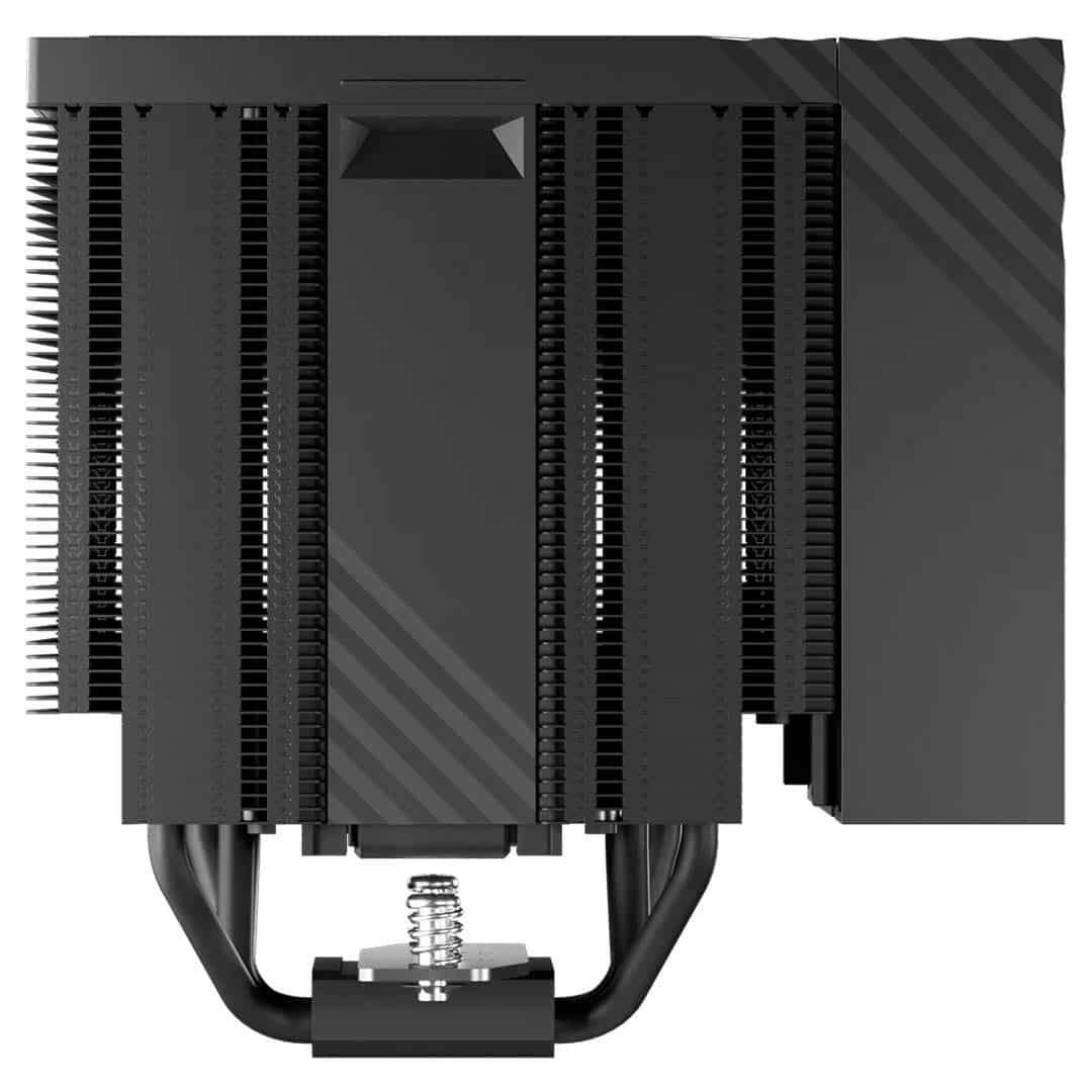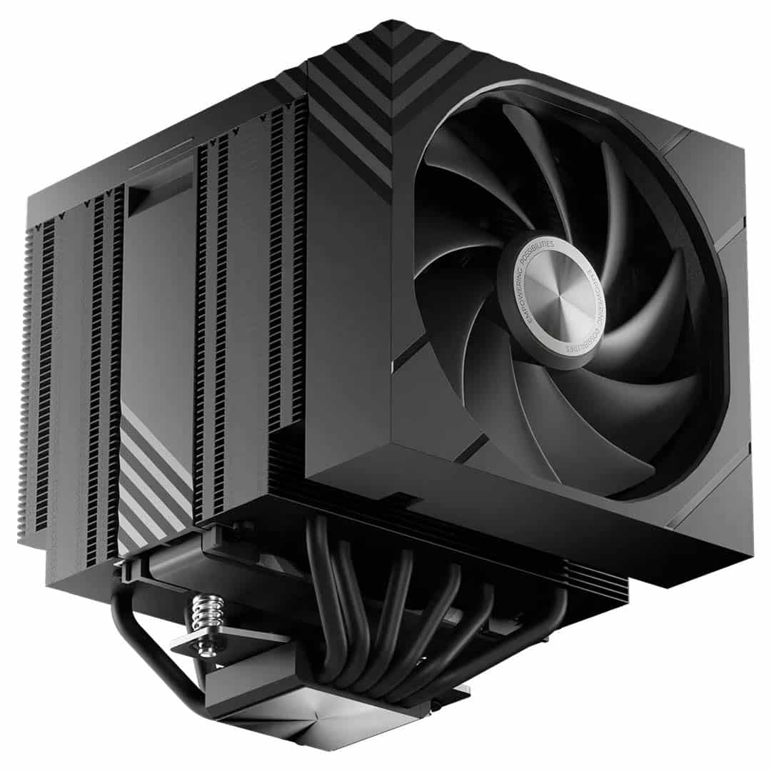 Dual-tower heatsink features advanced reflow-soldered fins and six copper heat pipes.